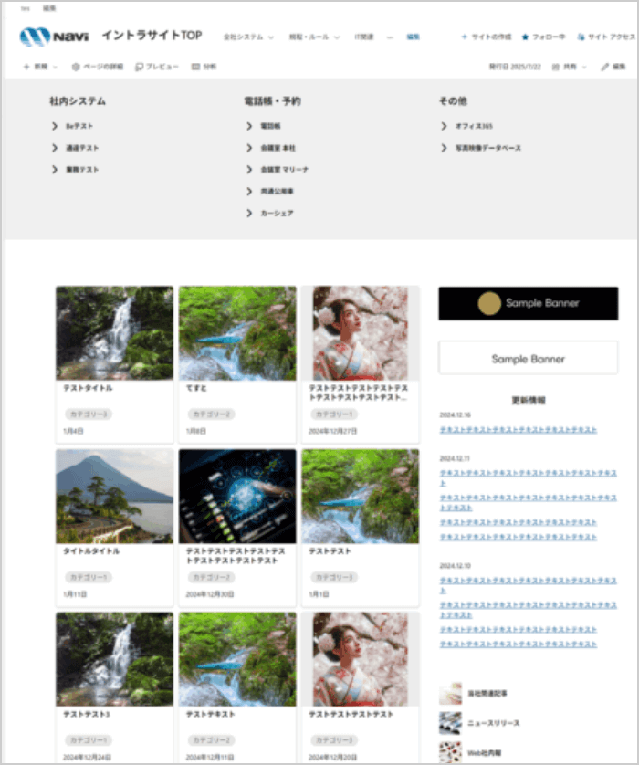 項目やコンテンツが高頻度で追加・増設される社内ポータルサイト。